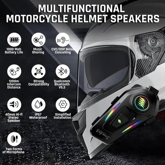 SAMDO Motorcycle Helmet Bluetooth Headset V5.3 for Cycling / Skiing / Riding