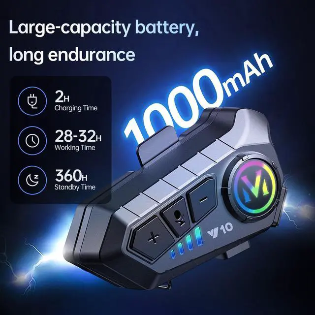 - SUOOKC helmet bluetooth headset supports 32 hour continuous working and 360 hour stand-by on a single charge.
