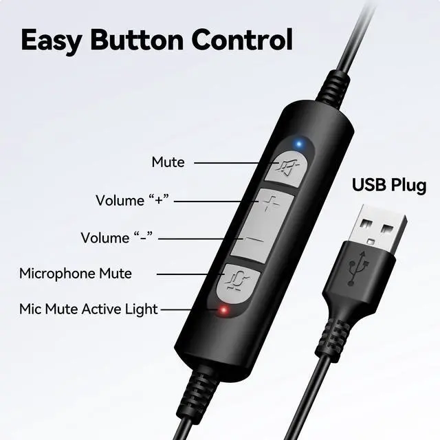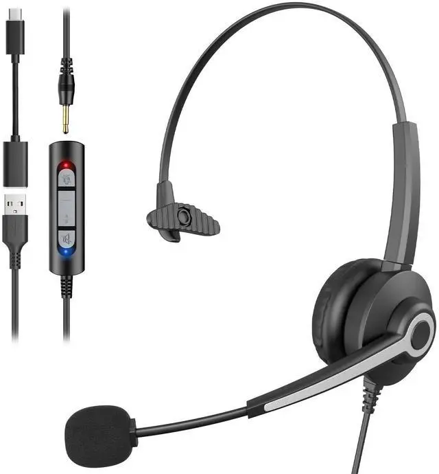 USB Headset with Microphone for Laptop/PC, Wired Single Ear Business Headphones with Noise Cancelling Mic, in-Line Volume Control for Call Center, Work from Office Home, Teams, Zoom, Skype