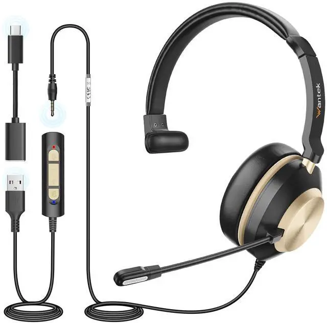 [Wide Compatibility]:Wantek pc headsets can be connected to your devices in three ways including USB, Jack 3.5mm and Type-C. So these headphones are able to meet your music or calling needs both indoors and outdoors to fulfill.