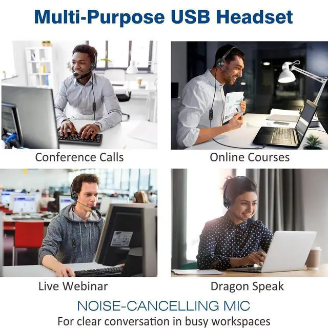 Business-grade Wideband USB Headset, Digital Signal Processing (DSP) and Noise-Cancelling Mic for crystal-clear conversations, Acoustic Shock Protection(ASP) to protect your hearing.