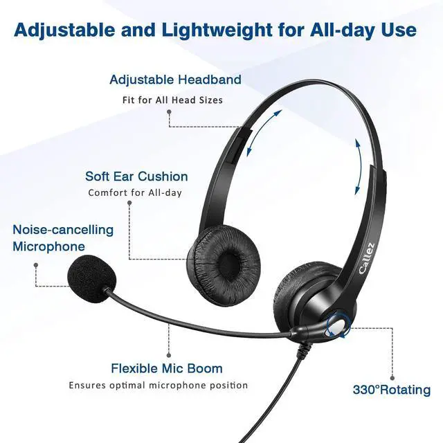 - Wideband audio and noise-cancelling boom microphone for crystal clear calls