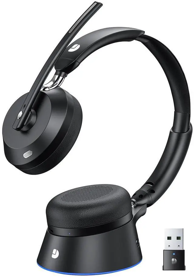 This wireless headset includes a desktop charging base for quick, convenient charging. Just place the headset on the dock or connect the included Type-C charging cable. A full 2-hour charge provides up to 60 hours of talk time.