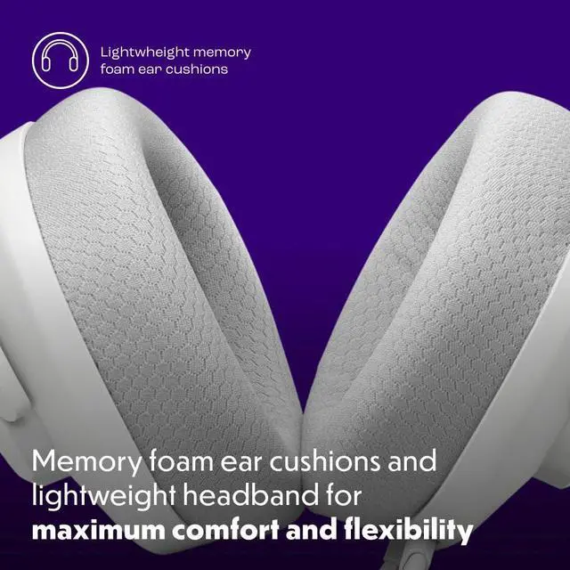 The lightweight headband and breathable fabric ear cushions with memory foam were designed to ensure comfort even during the longest gaming sessions.