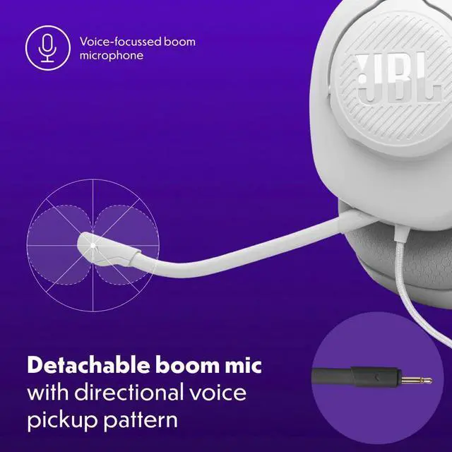 JBL Quantum 100M2 headset lets you rally the troops and opponents with clarity. The detachable, voice focus directional boom mic comes with mute features.