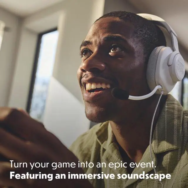 Turn your game into an epic event. Featuring JBL QuantumSOUND Signature, the JBL Quantum 100M2 headset puts you in the center of the action. Own the game with the immersive and accurate sound that lets you hear the tiniest details, a voice focus detachable boom mic for clear communications and lightweight ear cushions made with breathable fabric for better comfort.
