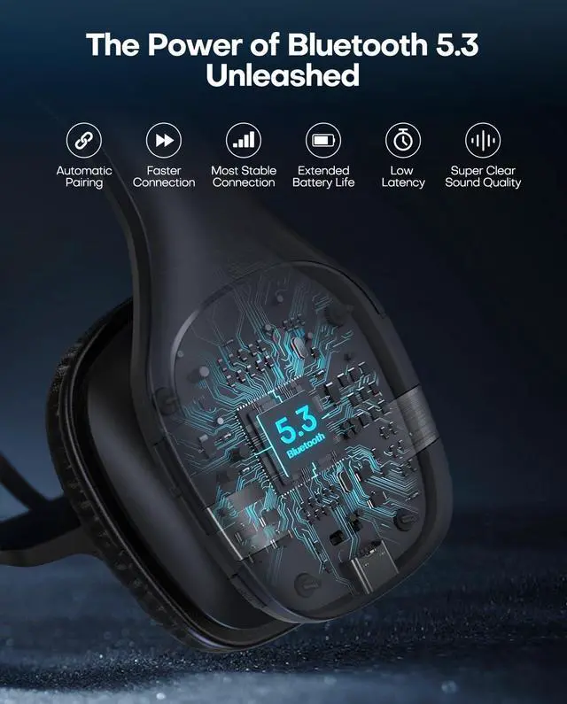V 5.3 Wireless PC Headset with Mic - 130H Playtime, LED Display, Noise Canceling, Mute Button