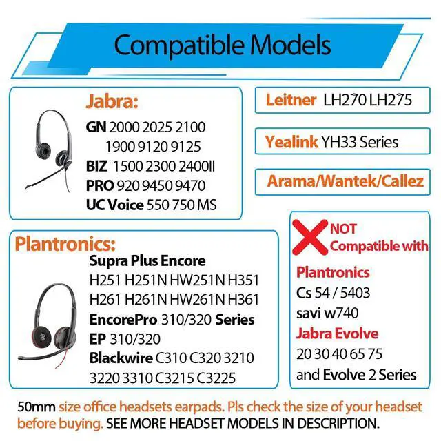 Compatible Headset List (included but not limited): DO NOT BUY THE ITEM IF YOU CAN’T FIND YOUR PHONE HEADSET MODEL IN LISTS, CONSULT US FOR COMPATIBILITY ADVICE.