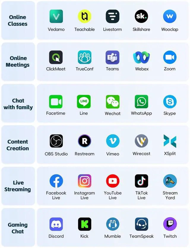 ![]() 1080P | 30fps | USB-A | ![]() 1080P | 30fps | Type-C | ![]() 2K | 60fps | USB-A | ![]() 2K | 60fps | Type-C | ![]() 4K | 30fps | USB-A | ![]() 4K | 30fps | Type-C |