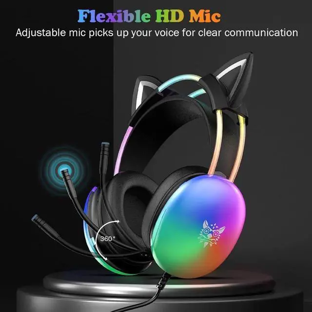 [Detachable Cat Ears] Want a unique and adorable look? We've added the white cat ears to the Gaming Headset. Cat ears can be detached. Define the gaming headsets to match your own style.