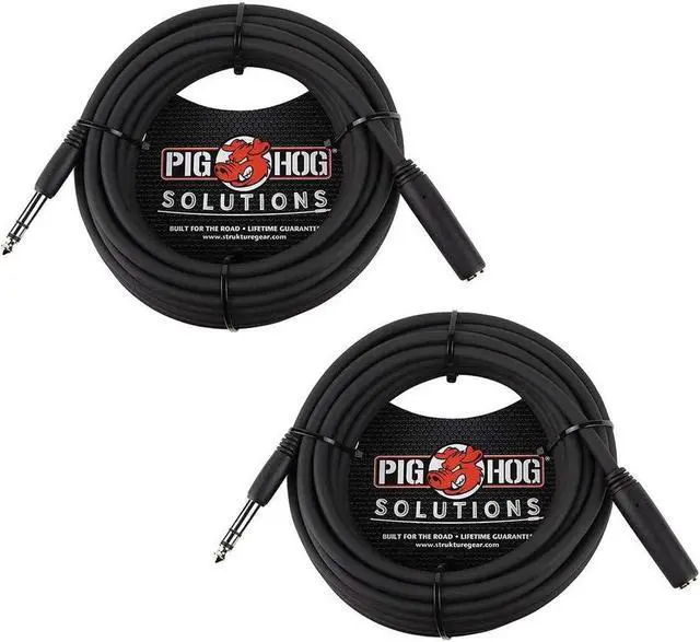 Pig Hog PHX14-25 1/4" TRSF to 1/4" TRSM Headphone Extension Cable, 25 Feet (2-Pack)