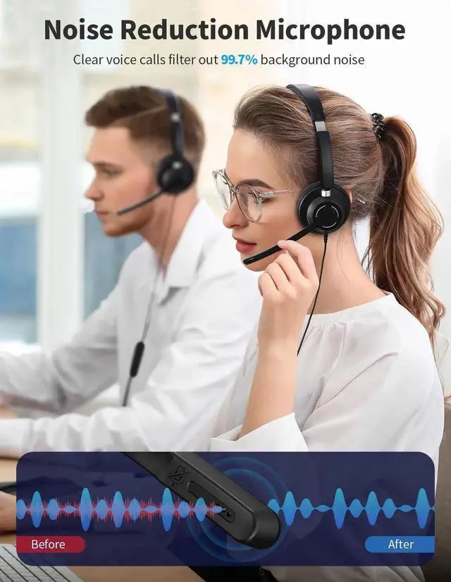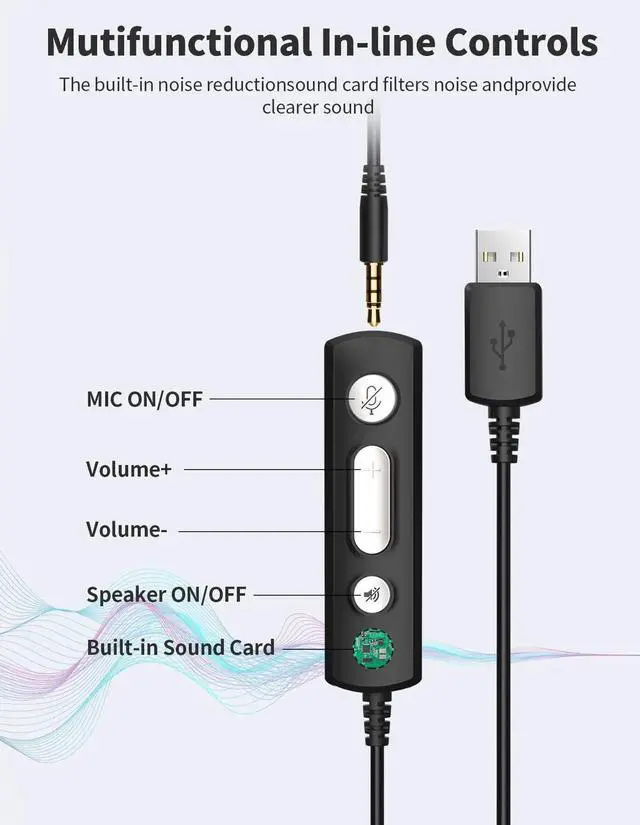 JabNecter Wired Headphones with Microphone for PC, On-Ear Computer Laptop USB Headset with Noise Canceling Mic in-line Control for Home Office Online Class Skype Zoom, One-Button Mute ( 3.5 mm + USB)