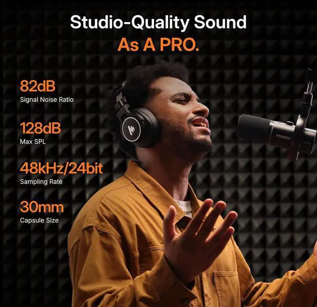 Simple Setup, Studio-Level Sounds - With a premium 30mm dynamic capsule and cardioid pickup, the mic delivers studio-quality vocal reproduction for podcasting, streaming, and vocal recording. It achieves an ultra-clean 82dB signal-to-noise ratio and handles up to 128dB SPL without distortion