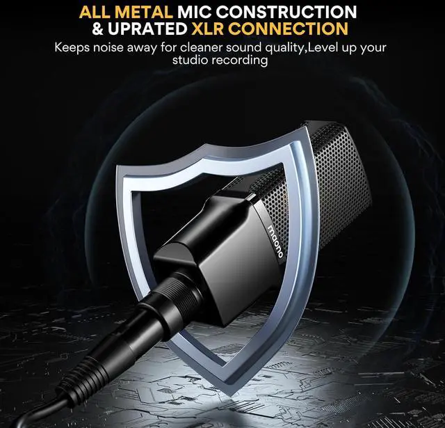 Premium Metal Structure: The body of this XLR condenser microphone is made with zinc alloy and treated with multi-layer coatings. Highly corrosion resistant, Simple and atmospheric design and protects the stability of the microphone's mechanical structure, ensure the purer audio signal and delivery better sound quality.