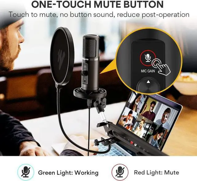 One-touch panel mute without button noise, Built-in LED Indicator lights to tell you the working status(Green: Working, Red: Mute)