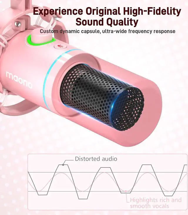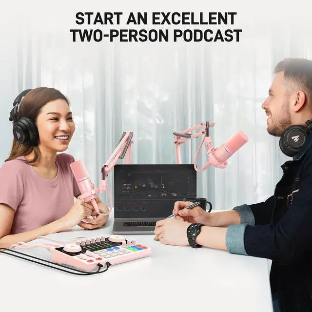 MAONO Podcast Equipment Bundle: Audio Interface and USB/XLR Dynamic Microphone - MaonoCaster E2 Gen2+PD200XS Pink