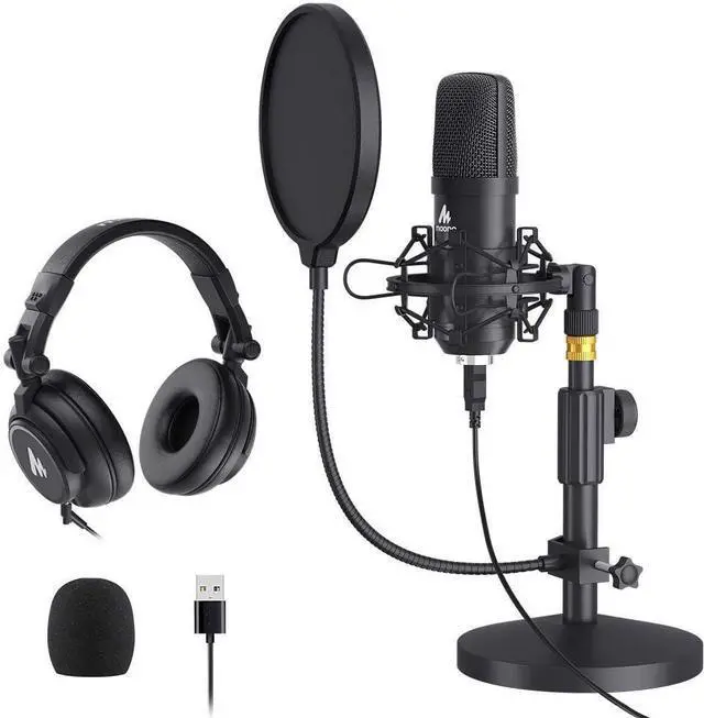 BUNDLE: PLUG AND PLAY: No complicated setup steps. No need for extra driver software, and no need for an external sound card. MAONO microphone and headphones bundle is very easy to set up. You just need to plug microphones and headphones to your computer, then begin your podcast. NOTE: If there is no sound coming out, please set MAONO microphone as default recording equipment on the sound setting.