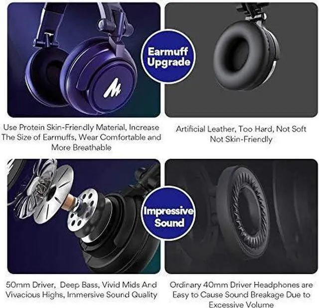 HEADPHONES: HI-FI SOUND: UPGRADED DJ studio headphones MAONO MH601 is built-in 50mm large aperture driver, which can bring you better listening enjoyment. Exceptional clarity throughout an extended frequency range, with deeper, accurater bass response. Professional active noise cancelling technology quells airplane cabin noise, city traffic or a busy office, makes you focus on what you want to hear