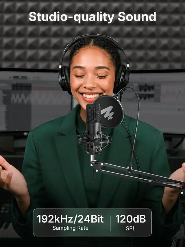 Studio-quality Sound: This condenser microphone has been designed with professional sound chipset, which let the USB mic hold high resolution sampling rate. SAMPLING RATE: 192kHz/24bit Smooth, flat frequency response of 30Hz-16kHz--Extended frequency response is excellent for podcasting, singing and voiceover, Performed perfectly in reproduces sound, high quality mic ensure your exquisite sound reproduces on the internet