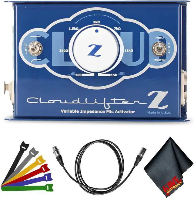 Bundle Includes: Cloud Microphones Cloudlifter CL-Z Variable Impedance Mic Activator + XLR Male to XLR Female Microphone Cable + 6Ave Microfiber Cleaning Cloth + Adjustable Cord Straps
