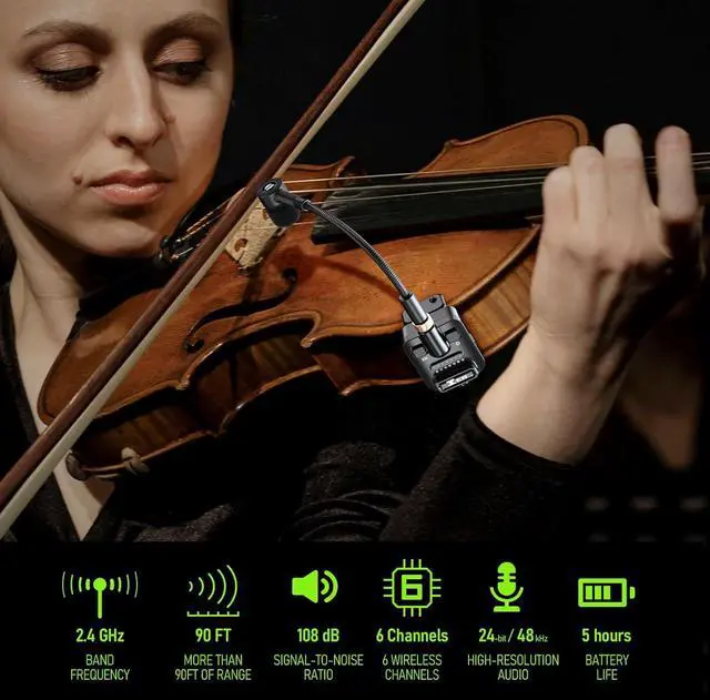 Broader Compatibility: Xvive U9 Violin/Mandolin Microphone Wireless System is equipped with an ultra-high-quality supercardioid microphone, making it suitable for violin, viola, Mandolin (Only compatible with mandolin in the 30-40 mm (1.18"-1.57") thickness range)