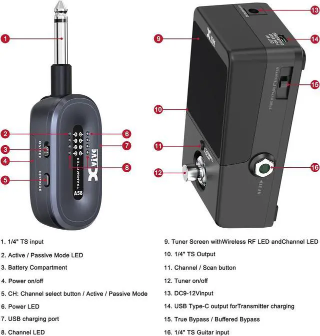 [What You Get] Xvive A58 Transmitter x1, Xvive P58 Rerceiver x1,12V DC Adapter x1, USB-C Charging Cable x1