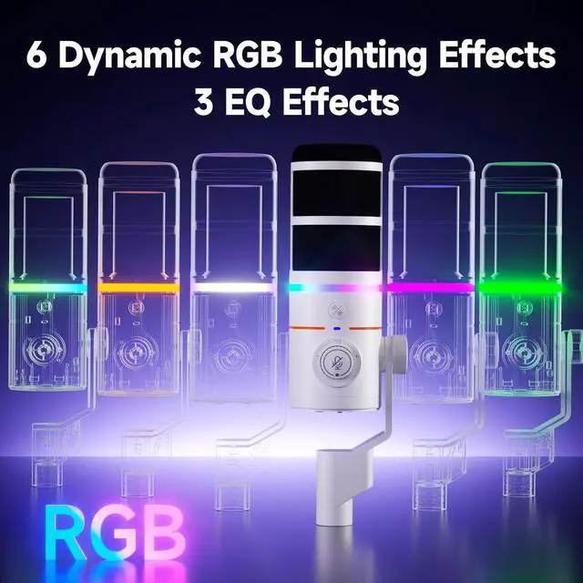 Vivid RGB Lighting EffectsThe desktop wireless microphone has 6 dynamic RGB modes to create a personalized atmosphere for recording, gaming, and streaming.