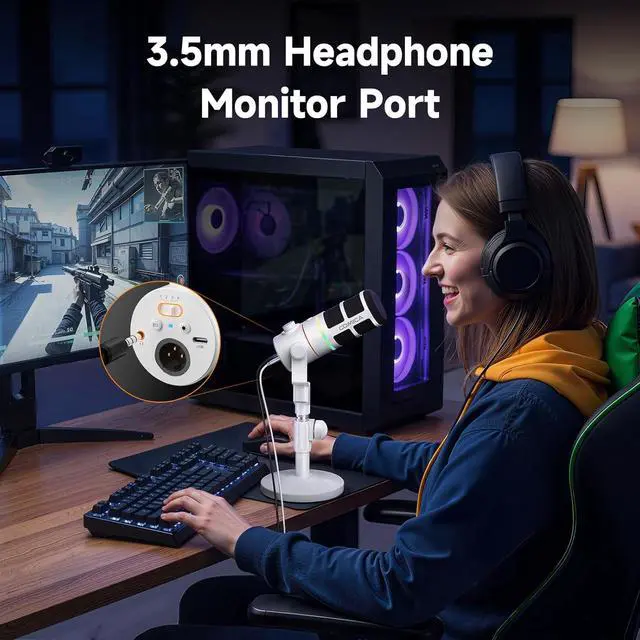 4-Level Gain Control & Real-Time MonitoringEasily adjust four gain levels for different scenarios, with 3.5mm headphone monitoring to stay in control of your sound.