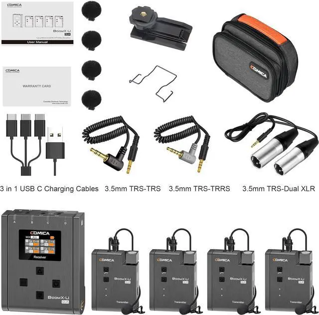 Professional Broadcast Level Wireless Mic: The Comica BoomX-U QUA wireless lavalier microphone is designed for professional recording needs, providing four additional lav mics. It offers excellent audio quality and is perfect for interviews, filmmaking, live streaming, and more.