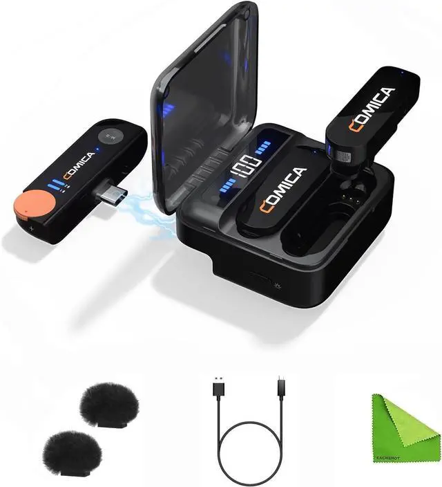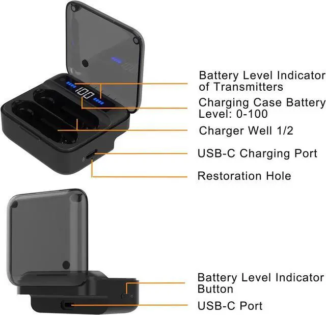 Tiny but Powerful Charging Case :The magnetic and rechargeable charging case can pack and charge the parts all at once. The transmitters can last up to 5 hours, and up to 15 hours with the charging case.