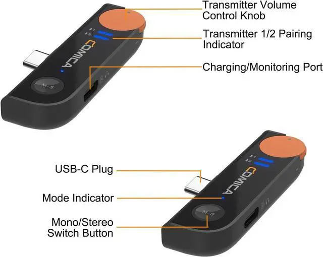 Charging& Monitoring, All at Once:The Vimo S has a USB-C port for charging and monitoring. You could both charge your phone and monitor your audio at one time via the audio adapter cable. No worry about your phones dead when in long-time live streaming or recording.