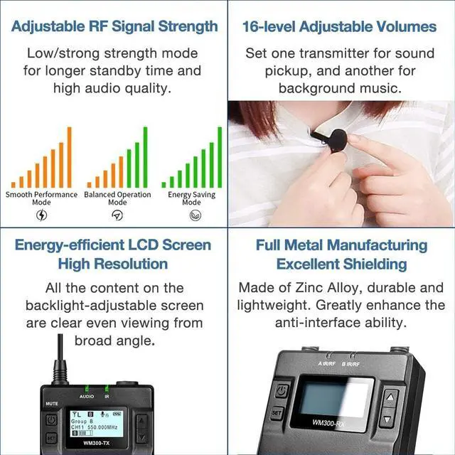 Compared with traditional ones like Uwmic9, Comica WM300, made of Zinc Alloy, is more accessible for sound transmission without delay.