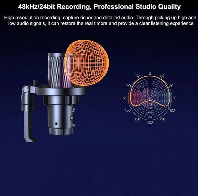 [48kHz/24bit Recording, Professional Studio Quality] High resolution recording, capture more richer and detailed audiopick up high and low audio signals, restore the real timbre and provide a clear listening experience