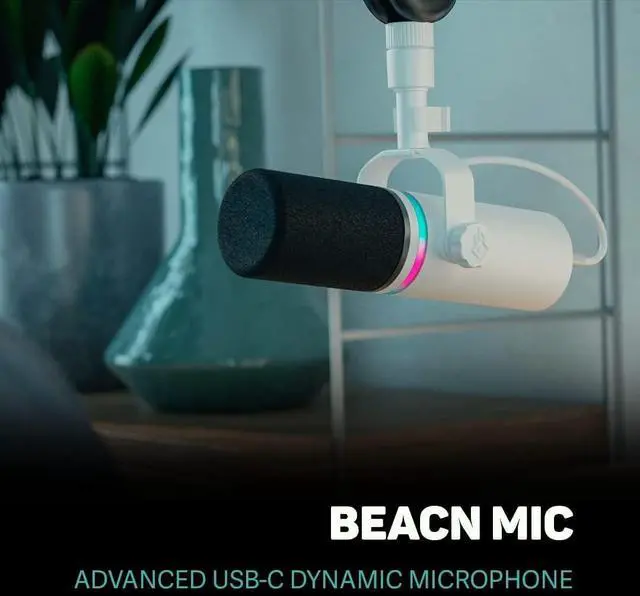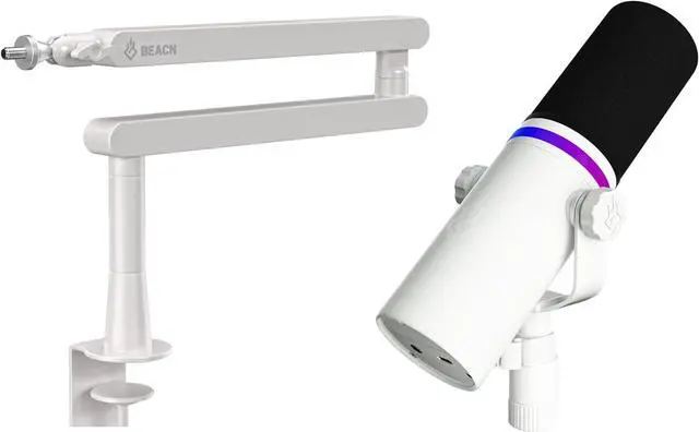 BEACN Light Dynamic USB Mic for PC with The White Mic Stand - Professional Microphone for Podcasts, Gaming and Streaming with Studio-Quality Low Profile Adjustable Micrphone Arm