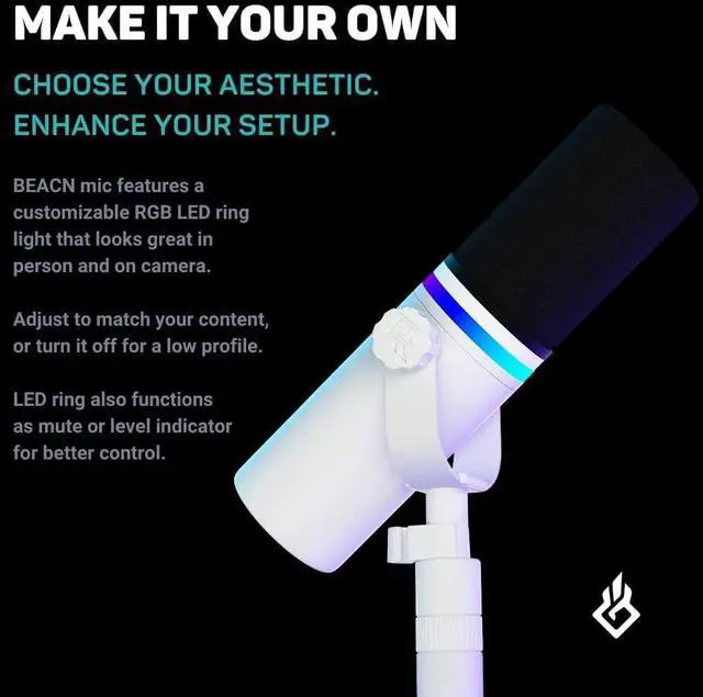 BEACN Light Dynamic USB Mic for PC With Mic Stand | Professional Microphone for Podcast, Gaming Mic, Streaming Mic | Studio-Quality Desk Mic for YouTube, Twitch, and Recording | Microphone for PC, Gaming & Streaming