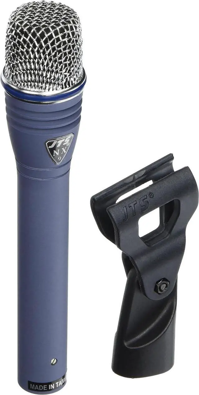 60 - 18,000 Hz frequency response Cardiod polar pattern Metallic enamel painted die cast metal body with hardened steel grill JTS signature dynamic shock mount virtually eliminates handling noise Electret condenser element