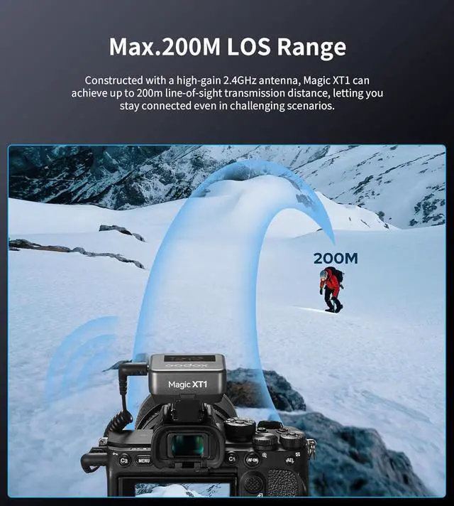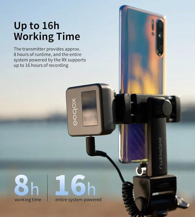 18H Battery Life & 656ft TransmissionThe transmitter provides approx. 8 hours of runtime, and the entire system powered by the RX supports up to 18 hours of recording.Constructed with a high-gain 2.4GHz antenna, Magic XT1 can achieve up to 200m line-of-sight transmission distance,making it an excellent on-the-go gear for your content creation.