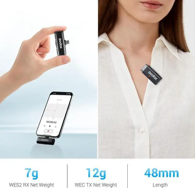 Compatible with Type-C/Android Device: With USB-C receiver the Godox WES2 Kit2 compatible with multiple devices such as smartphones, tablets