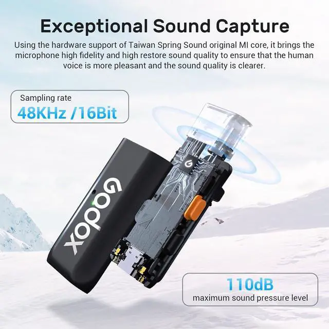 Small and Portable: The WES2 Kit2 transmitter weighs only 12g, the receiver weighs only 16g, portability and high-performance, enable you to hold the whole system in one hand easily. The charging case measures only 2.48'' x 3.35'' x 1.18'',which fits perfectly into your pocket and can be carried around freely