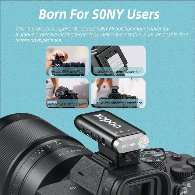 Born for S0ny CamerasSpecially crafted for S0ny camera users, WEC-S provides a superior & secured SONY Mi hotshoe mount driven by a unique protective locking technology, delivering a stable, pure, and cable-free recording experience.