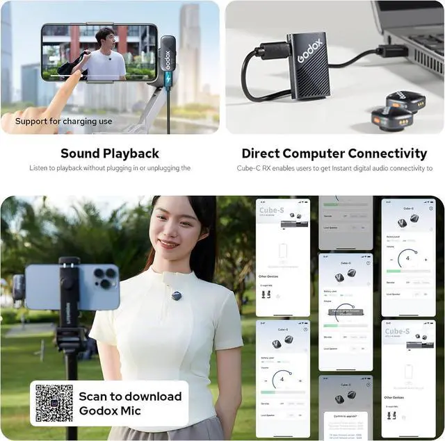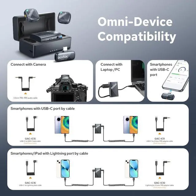 COMPATIBLE WITH EVERYTHING GODOX Cube-C microphone works great with iPhones, iPads, Laptop, Smartphone, Android phones, and Windows and Mac computers (with the right adapters). It's perfect for interviews, video recording, online meetings, podcasts, tiktok, vlogs, video conference, and live streaming. Capture every moment flawlessly!