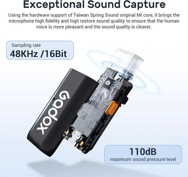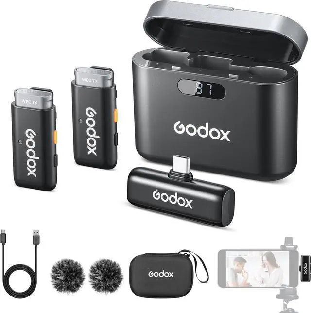Plug-and-play- GODOX WES2 kit2 wireless lavalier microphone , high-performance and compatible with Type-c.pairing.