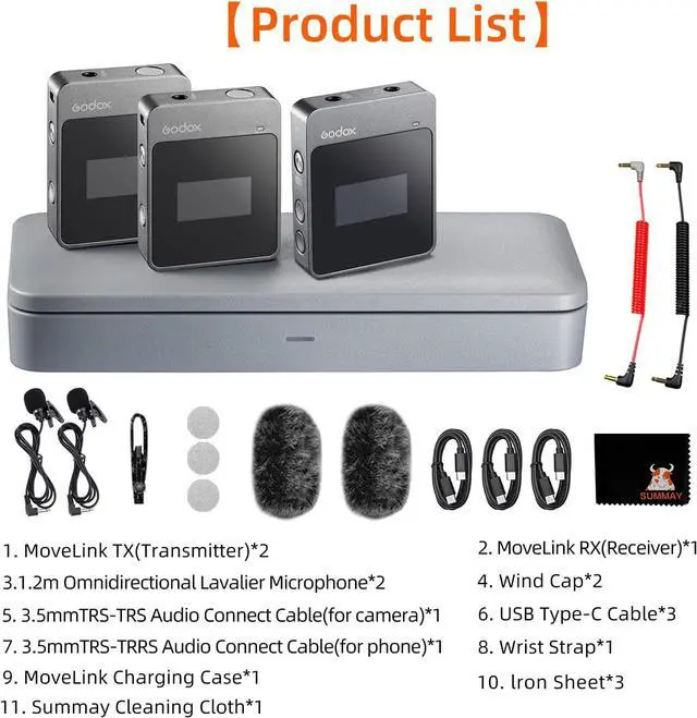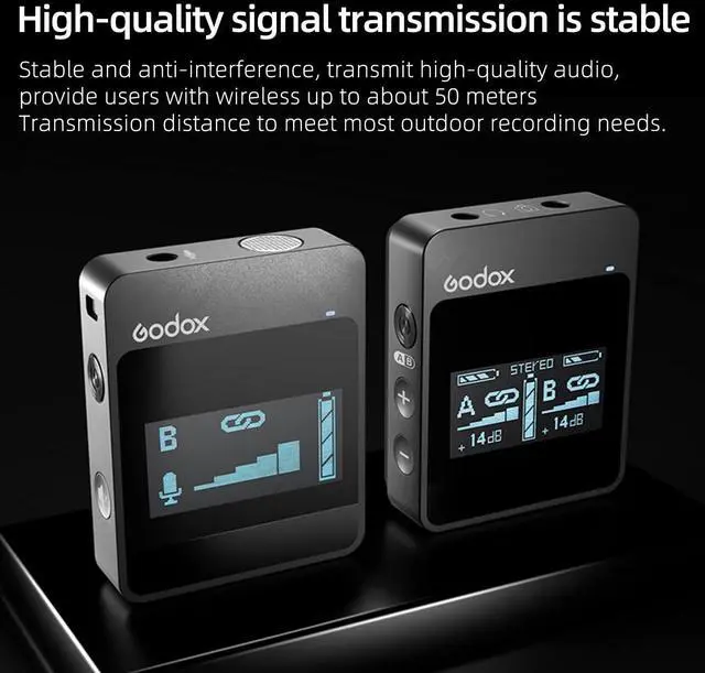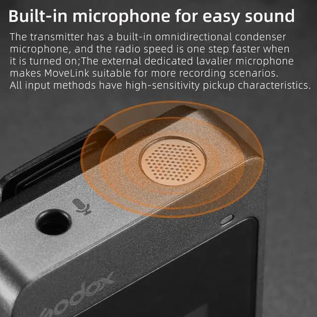 Easy to CarryThe MoveLink M2 transmitter and receiver measure about 5 x 4 x 1.4 cm. The single machine weighs about 27g and has a lapel clip that can be hung on the neckline, waist and pockets. It also fits into the camera's hot shoe opening for more flexibility.