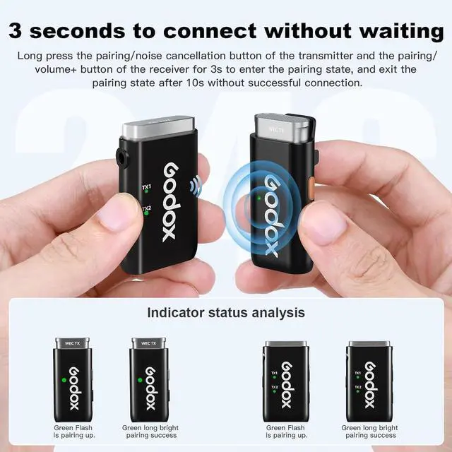 Long Battery LifeWith up to 8 hours of continuous usage, GODOX WEC wireless lapel microphone ensures that you never run out of power during important presentations, interviews, or performances.