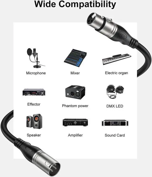 Wide Compatibility: The 3-Pin XLR cable can be used on any equipment equipped with 3-Pin XLR, such as microphones, amplifiers, mixers, phantom power supplies, speakers, stage dmx light, etc. Let you enjoy your music life anytime, anywhere. At home, outdoors, parties, studio recording, live sound, and other occasions