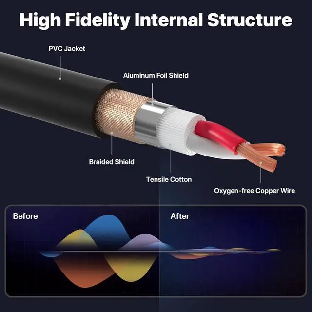 Professional Anti-Noise Design: The internal wire structure of the microphone cable uses a copper core high-density braided shield to achieve a high degree of anti-interference effect, and resist external interference. Oxygen-free copper conductor, the transmission speed is very fast