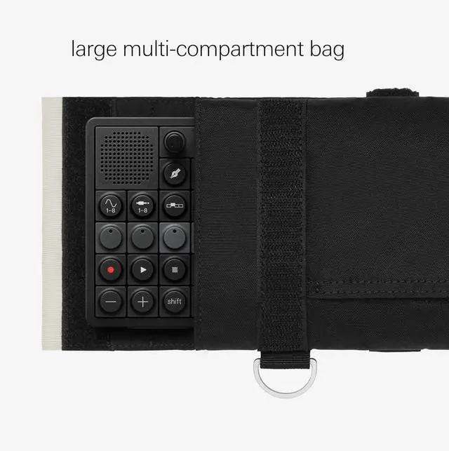 durable and functional large carry bag for OP1 field, with a secure front pocket for cables. hook-and-loop straps on the back allow for multiple uses, like attaching to other field bags. with back loop and field strap, you can wear it in multiple ways: carried on the waist, cross body, or over the shoulder. also fits the original OP-1.