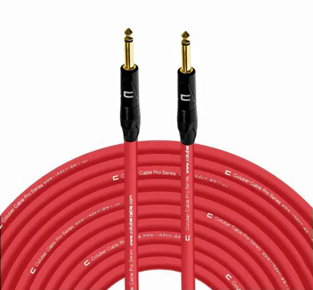 COLUBER CABLE 1/4" TS Male to 1/4" TS Male - 200 Feet - Red - Pro 3-Pin Microphone Connector for Powered Speakers, Audio Interface or Mixer for Live Performance & Recording