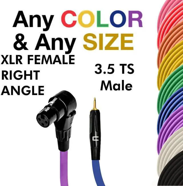 COLUBER CABLE Right Angle XLR Female to 3.5 TS Male - 200 Feet - Black - Pro 3-Pin Microphone Connector for Powered Speakers, Audio Interface or Mixer for Live Performance & Recording