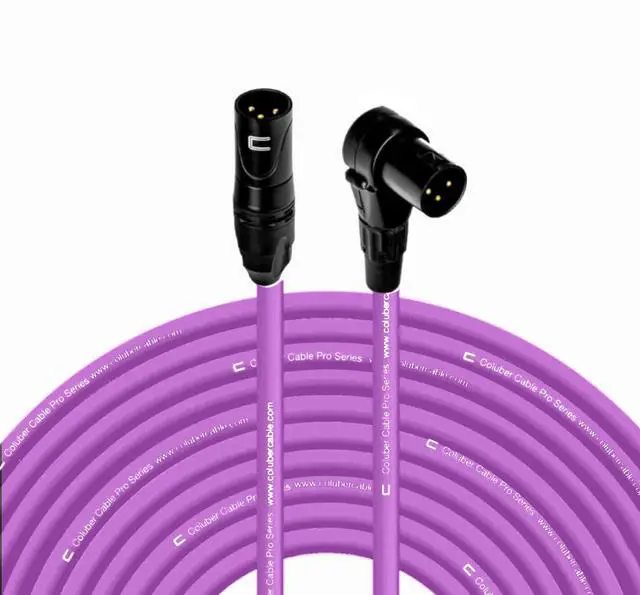 Balanced XLR Cable Male to Right Angle - 150 Feet Purple - Pro 3-Pin Microphone Connector for Powered Speakers, Audio Interface or Mixer for Live Performance & Recording